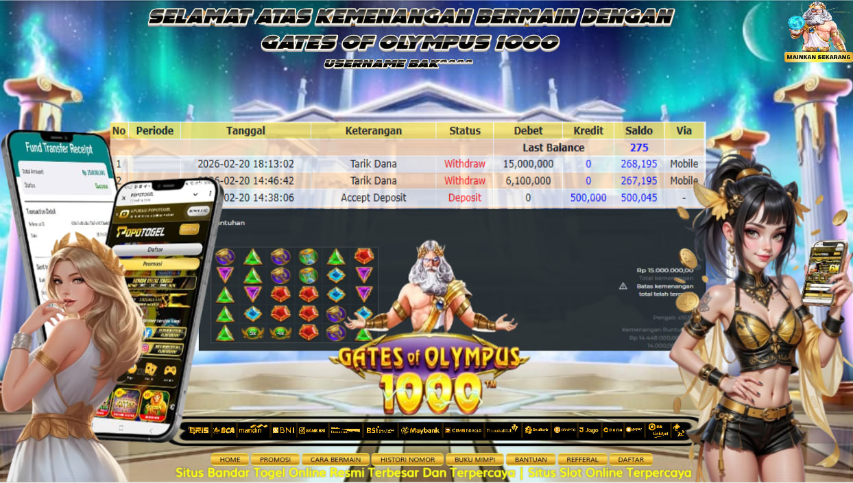Bukti Pembayaran Kemenangan Rp.15.000.000 juta permainan GATES OF OLYMPUS 1000 USERNAME BAK^^^^ LUNAS!